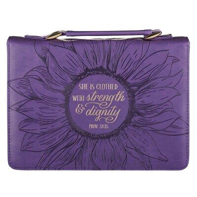 Bible Cover-She Is Clothed Prov. 31:25-Purple-MED